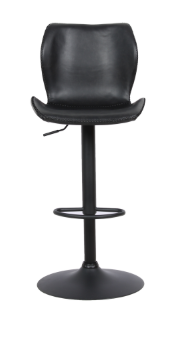 Banqueta estofada em poliuretano • Base disco giratória com regulagem de altura em aço pintada a pó.