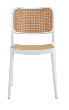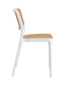 Cadeira em polipropileno com assento e encosto simulando tela sextavada, com proteção UV.