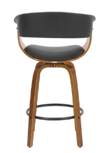 Banqueta em madeira multilaminada • Assento estofado em poliuretano • Base giratória em madeira e apoia-pés em aço pintado a pó.