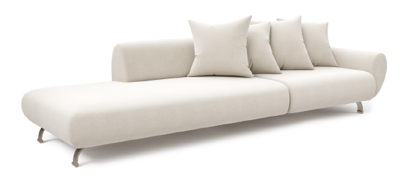 Encosto com almofadas soltas fibra siliconada. Módulos presos com parafusos borboleta.
