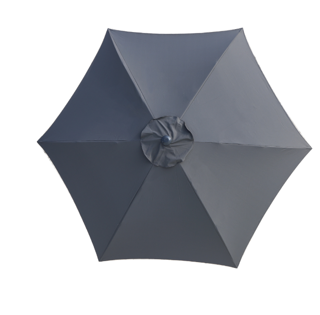 Ombrelone pé central. Cobertura de 2,70 metros em formato redondo, varetas em alumínio com fibra de vidro, que o deixam com maior resistência a ventos. Estrutura em alumínio pintada à pó ou com adesivo por transferência de calor simulando madeira, abertura por manivela, capa em tecido poliéster 250g/m² impermeável e proteção UV 50. Base vendida separadamente.