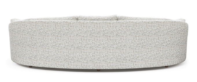 Arredondado. Assento fixo, encosto fixo com almofadas soltas.