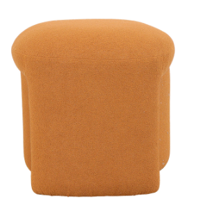 Puff em forma de “U” invertido estofado em tecido bouclé.