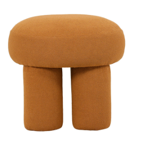 Puff redondo com 3 pés. Estofado em tecido bouclé.