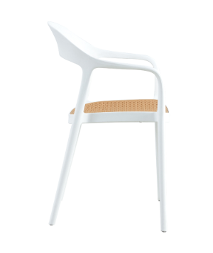 Cadeira com braços em polipropileno com assento simulando tela sextavada, com proteção UV.