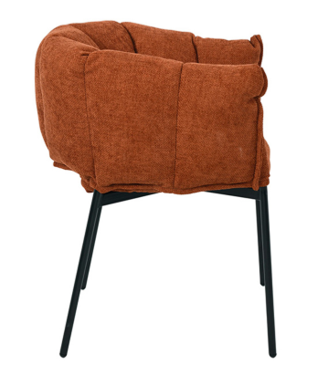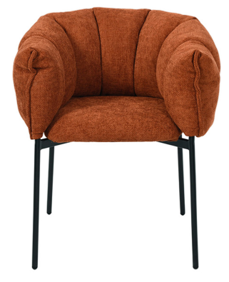 Cadeira com espaldar removível, estofada em tecido e base em aço pintada à pó.