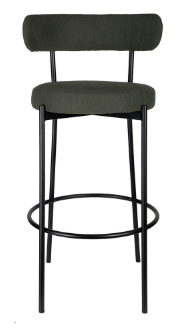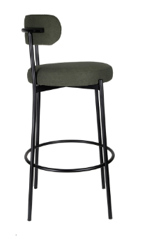 Banqueta estofada em tecido e base em aço pintada à pó.